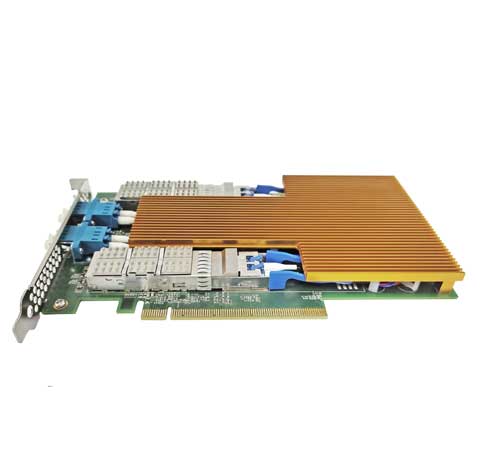 光潤通生產的的單路雙端口光纖 100G Bypass 以太網旁路服務器適配器 3.0 是 PCI-Express X16 網絡接口卡,在 PCI-E 適配器上包含兩個光纖(LR)100G 以太網端口(內含兩個 100G 單模 10KM 光模塊)。此適配器面向內聯網絡系統,可在系統出現故障時維護網絡連接。